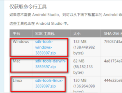打开Android开发网,搜索“SDK Platform Tools”,打开如下所示的网站,可以看到有Windows\\Mac\\Linux三个版本的SDK Platform Tools,点击符合你电脑的版本下载它。adb工具就包含在这个工具中。