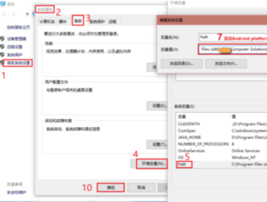 打开我的电脑——高级系统设置——系统属性——高级——环境变量——编辑Path,将步骤1 adb所在路径添加到Path变量值中。