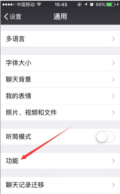 4. 在通用界面,我们找到“功能”选项,点击进去。