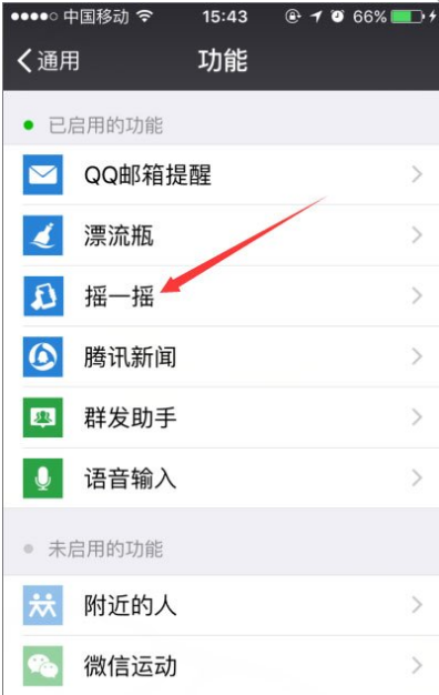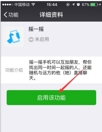 8. 下一步,我们要“重新启用该功能”,这样微信摇一摇功能就又可以使用了。