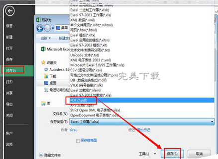 7. 这里的保存类型找到并选择为“ PDF ”格式,然后点击右下角的“确定”。