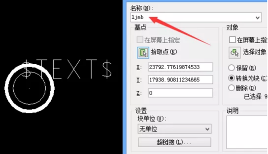 6. 选中图形并添加为块,然后在弹出界面输入名称,如下图: