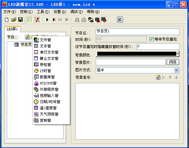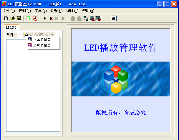 2. 在左侧列表中的【新建节目】图标(只有它可以点,其他都是灰的),在其下拉菜单中点击【正常节目页】。