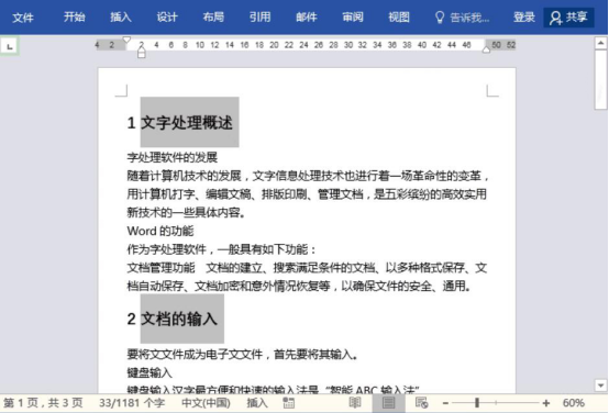 1. 首先,我们将需要自动生成目录的 Word 文档打开。并结合 Ctrl 键将所有的一级标题选中。