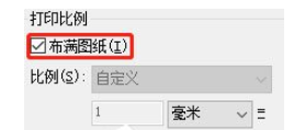再来设置【打印比例】,展开列表,比例(例如 1/4” = 1’-0”)表示打印到“模型”选项卡中的比例,这里默认【布满图纸】,