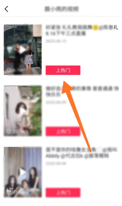 查看对方的短视频作品,选择其中一个视频,点击“上热门“,