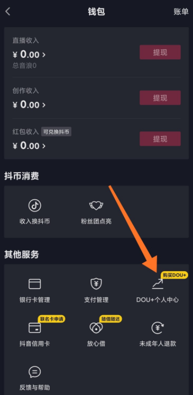 进入以下界面,点击“DOU+个人中心“服务,