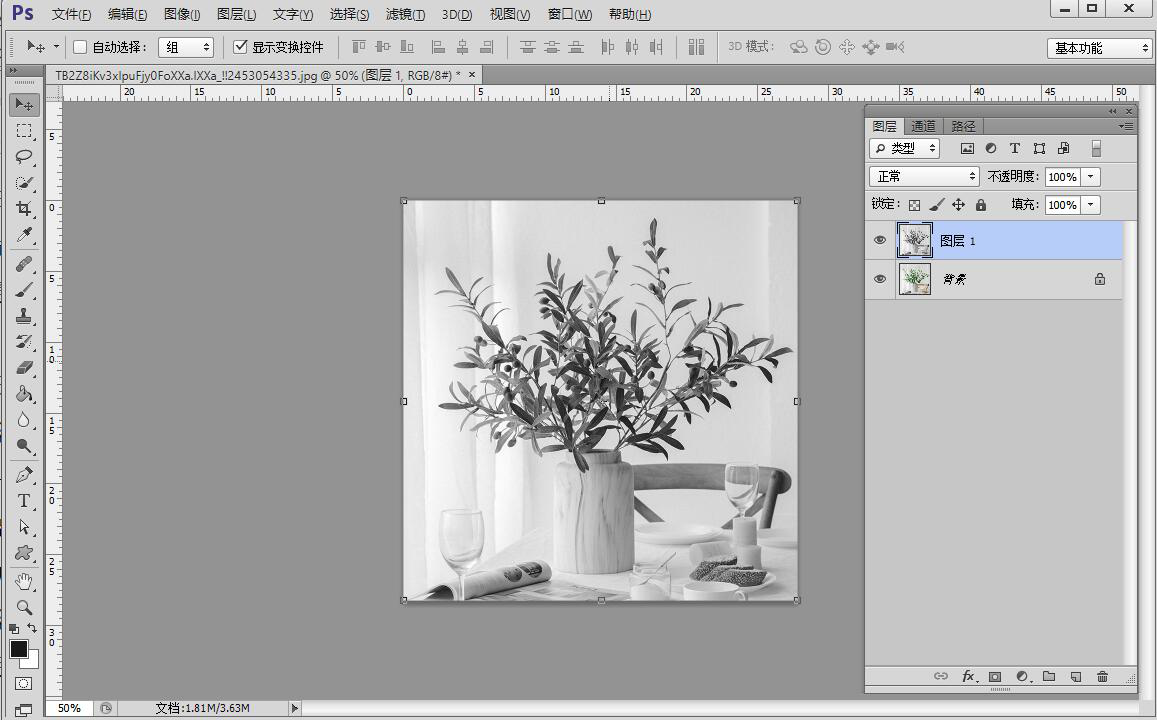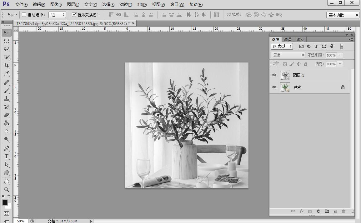 7. 回到 PS 操作界面,便可以看到彩色图片变成了黑白图片。