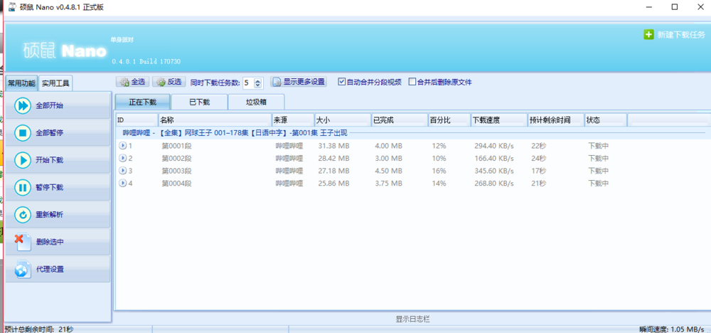 等待视频下载完成,这里是分成了四段视频,你可以通过硕鼠进行文件合并,方便后续观看。