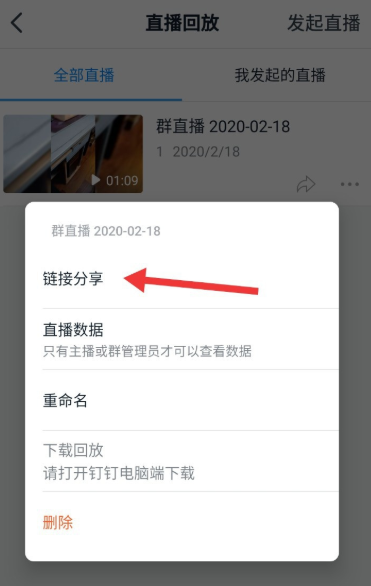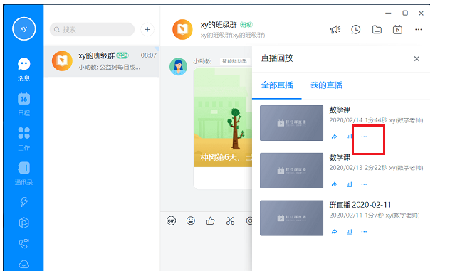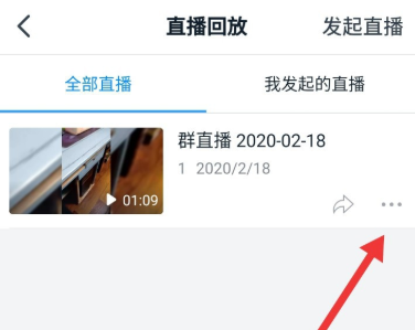 进入直播回放页面,找到需要分享的群直播内容,点击“...“,