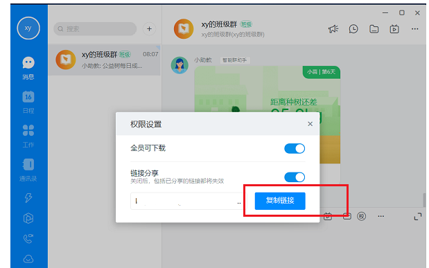 勾选“链接分享“,启用这一权限,最后点击“复制链接“,将链接分享给好友,他就可以通过链接观看直播内容。