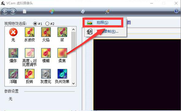 6. 如果用户想给自己正在播放的视频拍摄,就可以在 vcam 虚拟摄像头中点击“拍照”即可录制自己正在播放的视频内容。