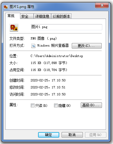 现在查看图片处理效果,如图,图片压缩之前是 115 KB,压缩之后是 74.6 KB,体积变小了。