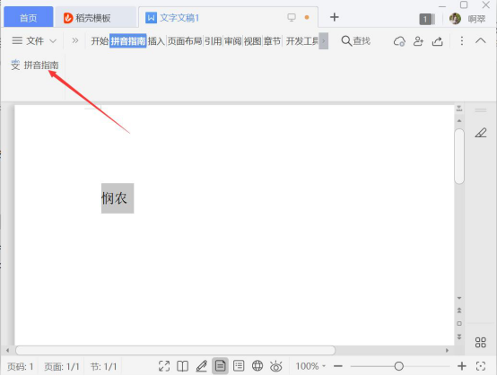 3. 接下来,将 Word 中需要打出拼音声调的文字选中,再点击“拼音指南“按钮。