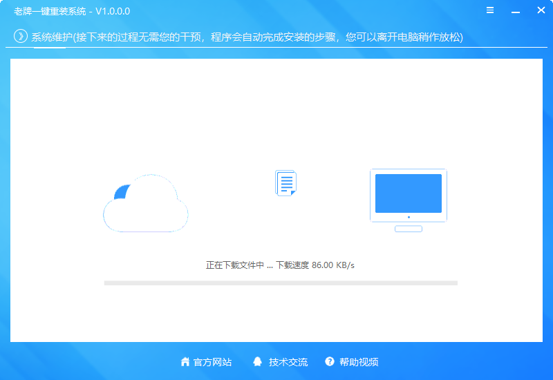 现在进行系统维护,整个过程无需用户手动操作,软件会把系统和需要的组件下载到最大的硬盘分区,然后自动安装系统,