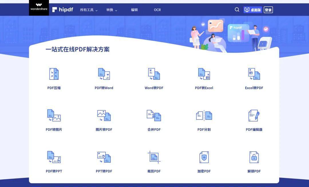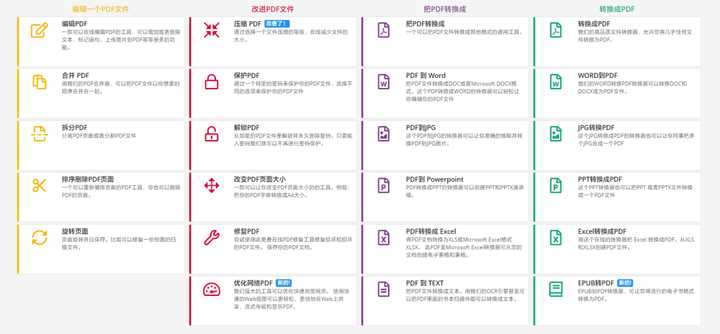 网站的颜值很高,我很喜欢。号称“一站式的在线 PDF 解决方案”,功能覆盖也是相当全面,基本的转换、合并、编辑功能也都有,处理速度非常快。