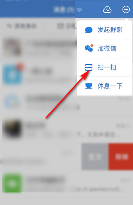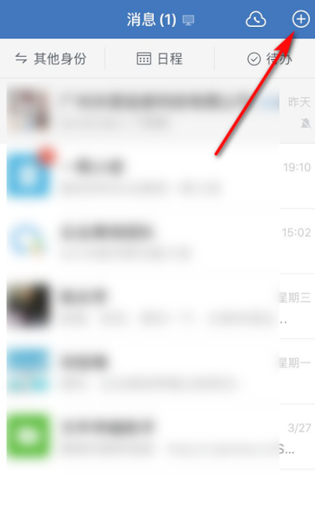 在另一个手机设备中安装企业微信,打开软件,登录同一个账号,然后点击右上角的【+】,