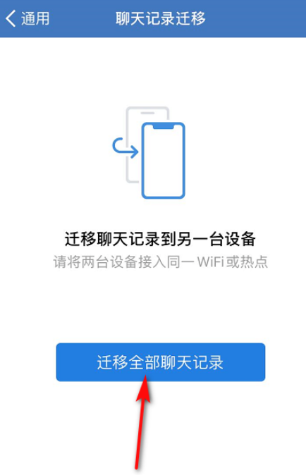 现在使用聊天记录迁移功能,如图,点击【迁移全部聊天记录】,