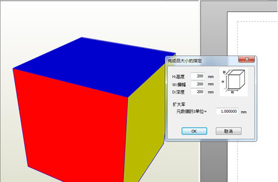 3. 3D模型导入到纸艺大师之后,会弹出一个“完成品大小指定”弹窗,在弹窗内输入自己需要的模型尺寸数据,点击【OK】。
