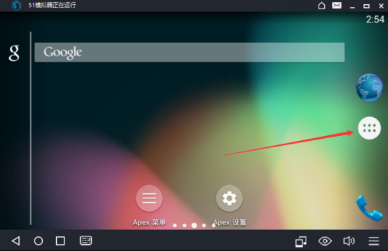 2. 如果 51 模拟器能正常启动,就点击界面右侧中部的白色菜单按钮。
