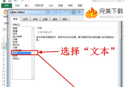 3. 在打开的设置单元格格式窗口中,点击“数字”选项卡,然后在数字选项卡中从分类列表里选中“文本”,然后点击“确定”。