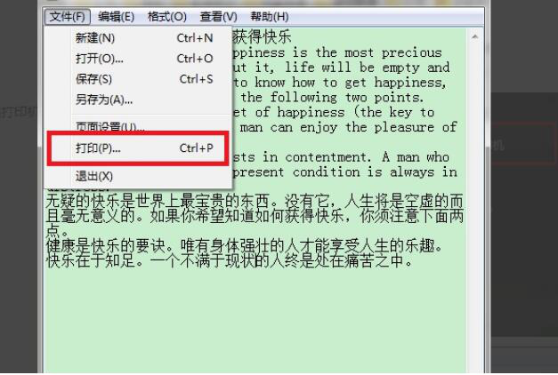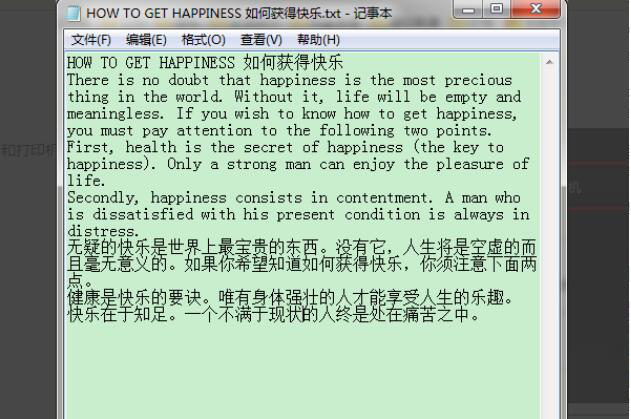 3. 打开任意可以调用打印机的文档,比如这里打开名为“如何获得快乐”的文本文档。