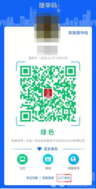 如果我们的随申码显示与我们实际情况不符,例如我们已经符合“绿码”的情况,但是却出现了“黄码”、“红码”等情况,需要通过随申码健康码的最下方,点击【我要申诉】按钮,进入申诉页面,说明情况后,工作人员核实即可为我们修改健康码显示颜色。