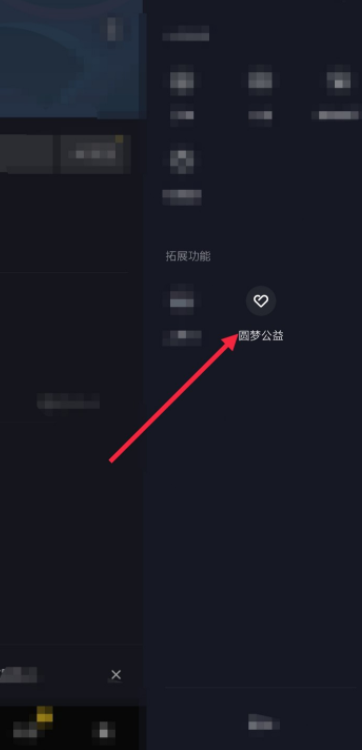 进入新的界面,下拉找到【更多功能】选项,点击它,然后点击【拓展功能】——【圆梦公益】,