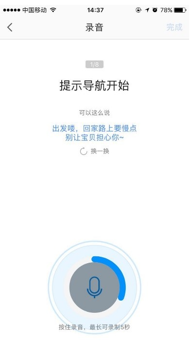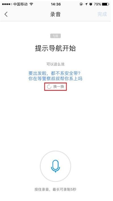 选择一个你喜欢的版本,按住页面底部的“话筒”图标不放,录入相关的播报口令,即可生成你的个性语音导航。时长要控制在5秒以内,不然可要重新录入哦。