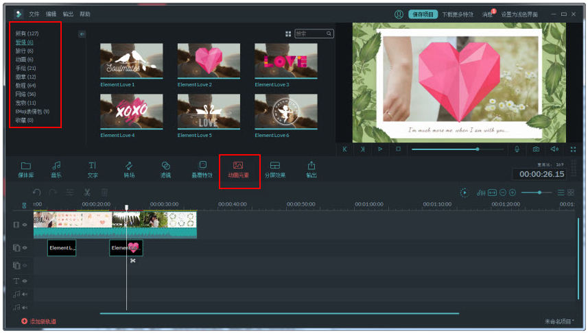 6. 添加“动画元素”来丰富图片,一颗红心. 一对天鹅更能传达幸福。