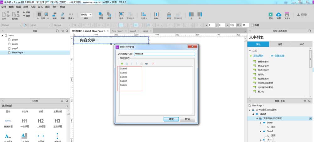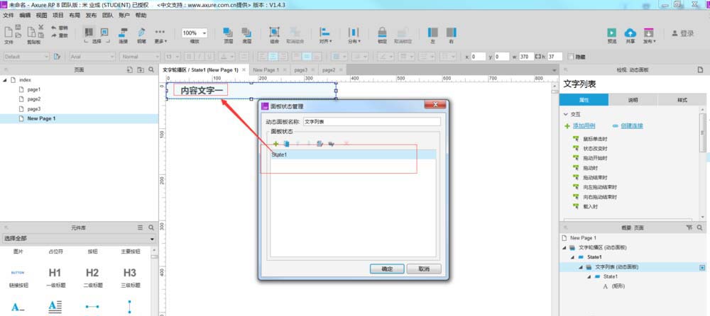打开这个动态面板,在state1中输入文字,根据情况随便输入文字,