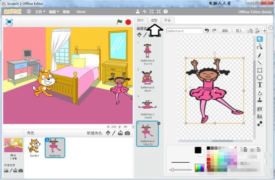 3. 这样 Scratch 软件界面就由英文变成了中文。