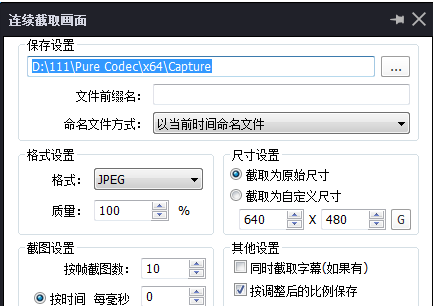 3. 点击“连续截图”后会弹出一个设置窗口,在该窗口中可以设置截图的保存位置以及保存格式等,如下图所示: