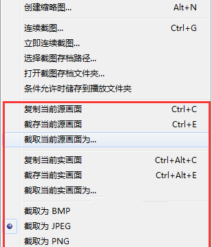 5. 普通截图就不用多说了,点击“截取当前源画面为”,之后选择保存截图的位置以及格式等就可以了;