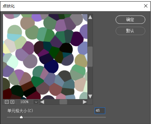 2. 执行“图像—像素化—点状化”命令,在打开的“点状化”对话框中,设置“单元格”大小为 45,如下图所示: