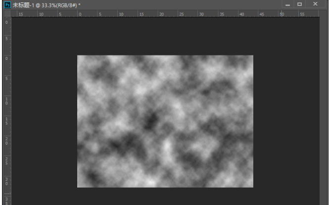 1. 打开 PS 软件,新建一个文档,恢复前景色和背景色,执行命令“滤镜—渲染—云彩”命令,按“Alt+Ctrl+F”快捷键重复执行滤镜,加强云彩效果,如下图所示: