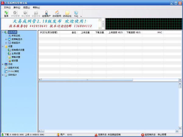 天易成网管是一款免费使用的国内领先的局域网电脑上网监控软件!无需调整网络结构. 安装在局域网内任意一台电脑即可全面监控局域网内所有电脑的上网行为,提高员工工作效率. 合理分配网络带宽资源. 拦截审核敏感信息和邮件. 屏蔽不良网站等。软件无需调整网络结构. 安装在局域网内任意一台电脑即可全面监控局域网内所有电脑的上网行为。