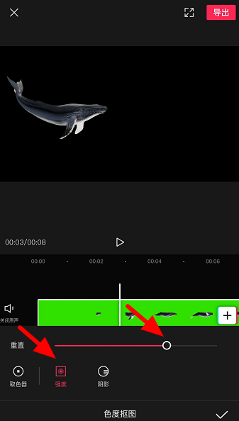 点击“强度”,向右拖动进度条上的小圆点进行调整,然后点击“√”