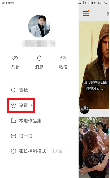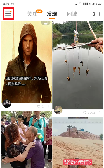 打开快手 APP,进入页面,点击左上角的菜单图标。