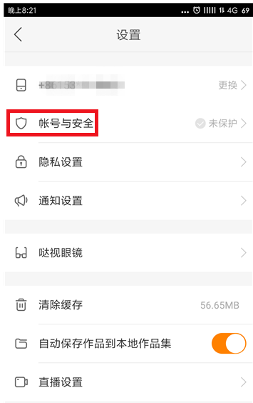 进入设置界面,点击打开“账户与安全”选项。