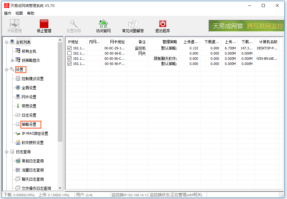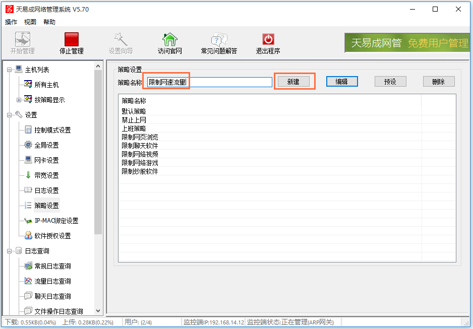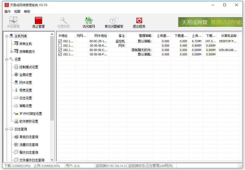 总有一些员工在上班时间做着其他事情,比如说偷偷逛淘宝、看视频、玩游戏,这样不仅会拖慢工作,还会占用局域网网速,严重影响其他人。所以,我们需要严格控制局域网各电脑速度,下文介绍使用天易成网络管理软件限制电脑网速流量,请大家参考。