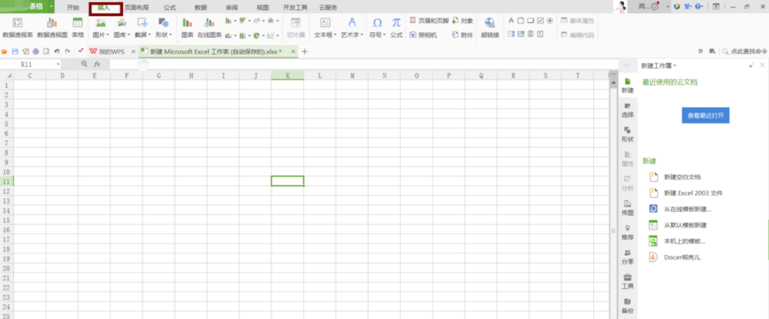 1. 打开 Excel 工作表,点击最上方菜单栏中的插入,进入到详细页面,如图。
