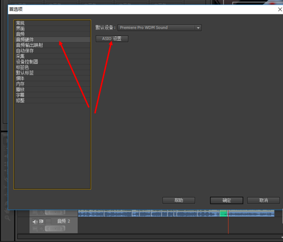 弹出首选项界面,点击 ASIO 设置按钮,如图,