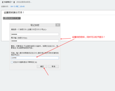 设置密码以及密码提示,按确定后你就可以看见文本已经被加密起来。