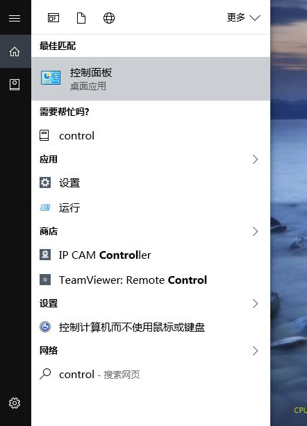 直接在左下角Contana搜索框中输入关键字“ Control ”,即可启动传统版控制面板。当然这个方法需要使用者记忆一下命令字符,是众多方法中最直观、效率也是最高的一种。