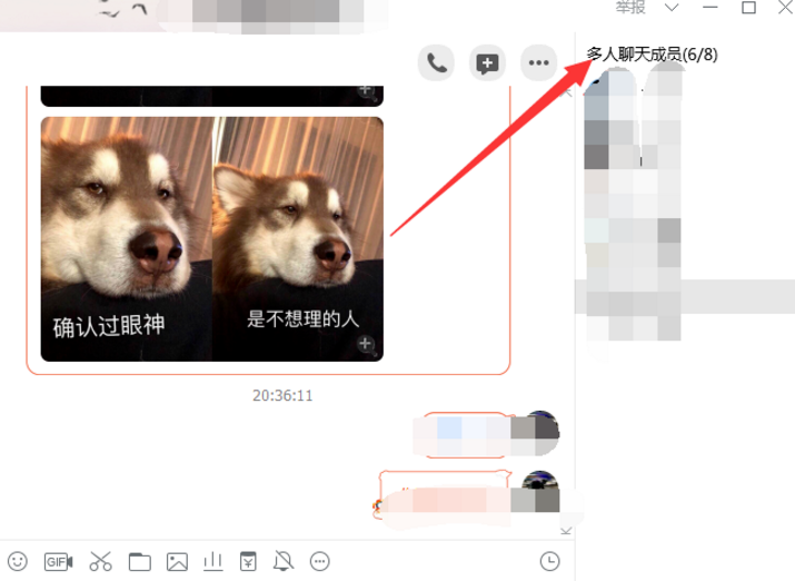 2. 进入一个群组后看到右侧有多人聊天群员信息。
