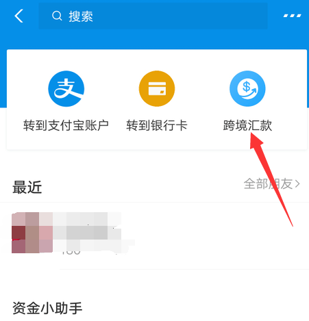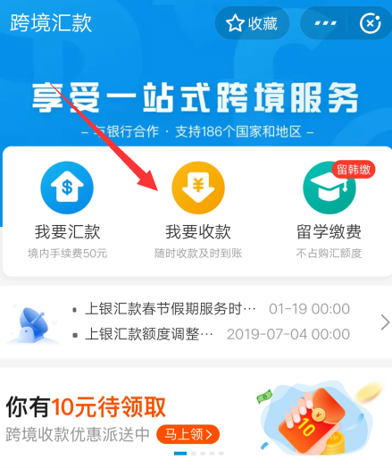 打开转账服务,进入以下界面,点击“跨境汇款”,如图,选择“我要收款”,
