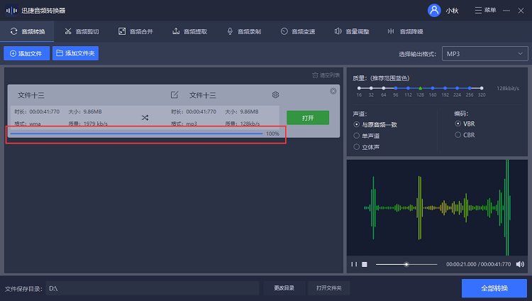 设置完成,点击“全部转换”,软件即可自动修改音频文件格式,静待几秒即可。