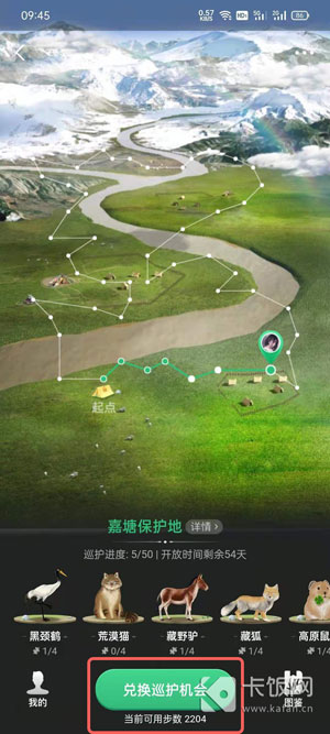 2. 进入保护地后,消耗自己默认获取的巡护机会后,点击“兑换巡护机会”;