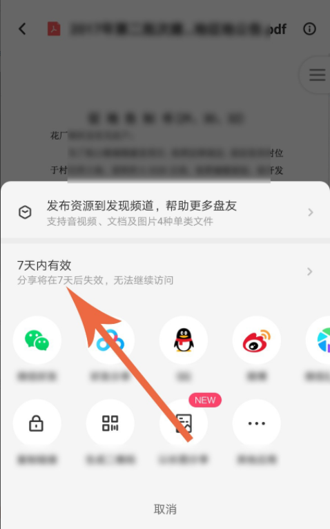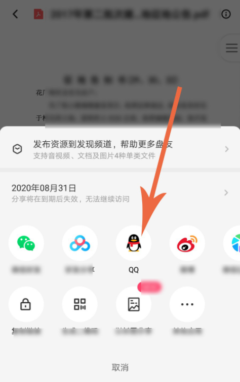 点击 PDF 文档,返回到分享界面,可以将文档分享给 QQ 好友。